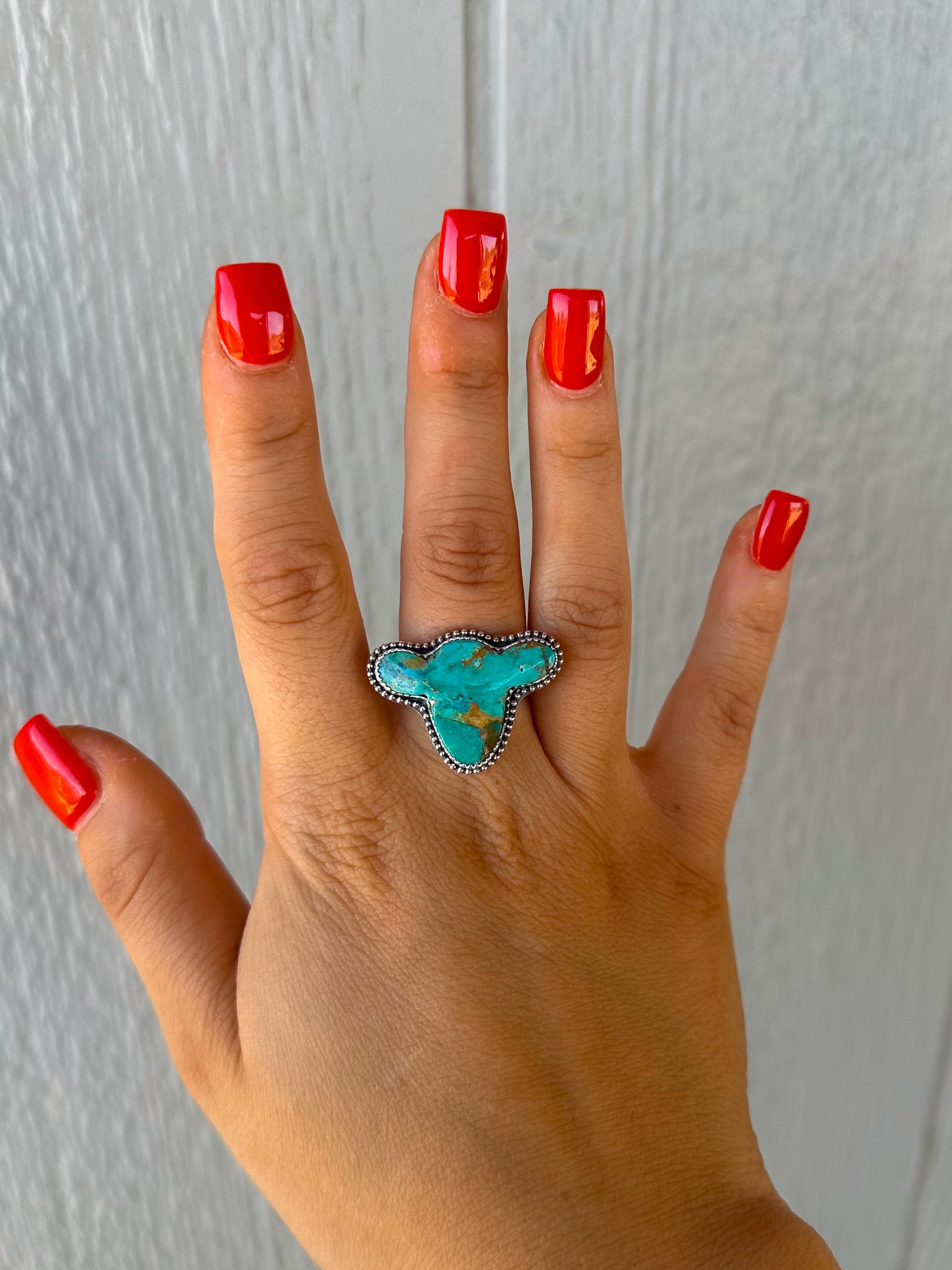 The cutest Kingman calf head with a beaded border ring. Adjustable size. Best fits sizes 7-9.